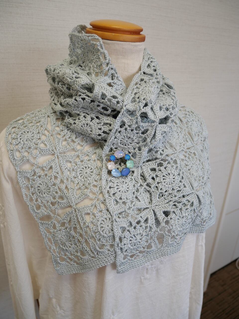 四角いモチーフを繋ぎながら編みました。