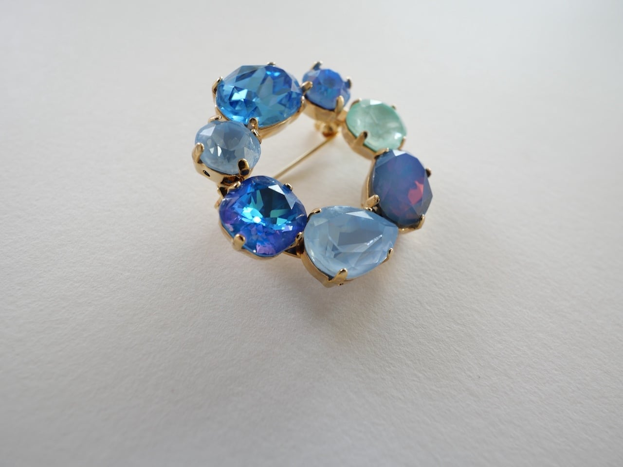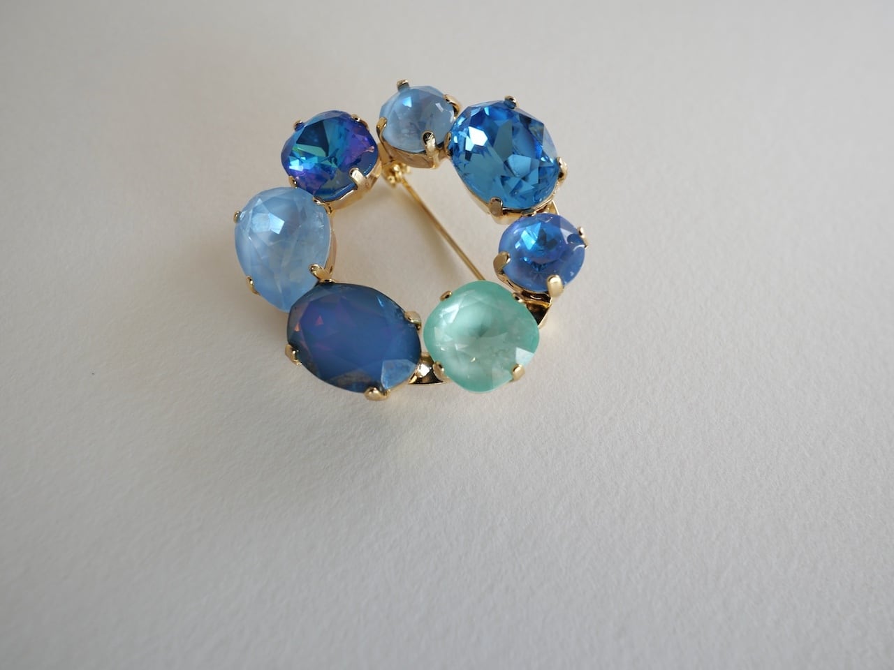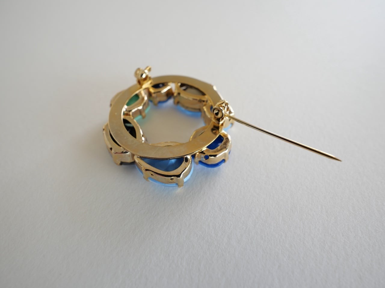 7個のクリスタルガラスを丸くブローチに仕上げたことによる