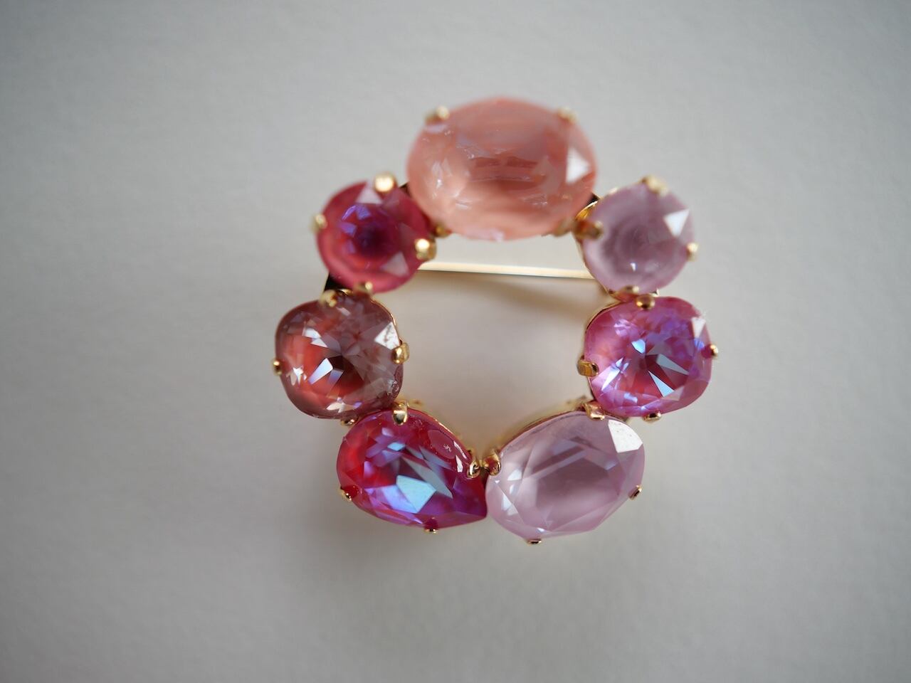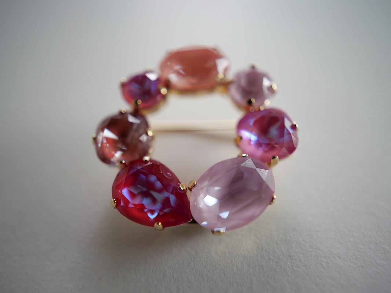 7個のクリスタルガラスを丸くブローチに仕上げたことによる