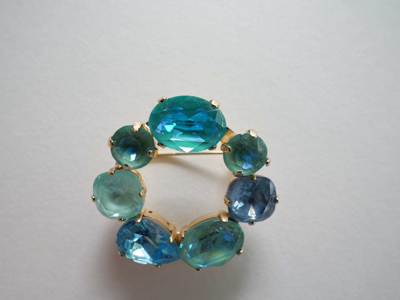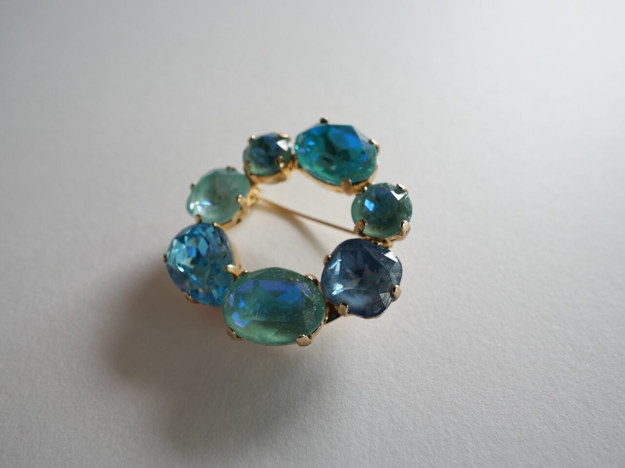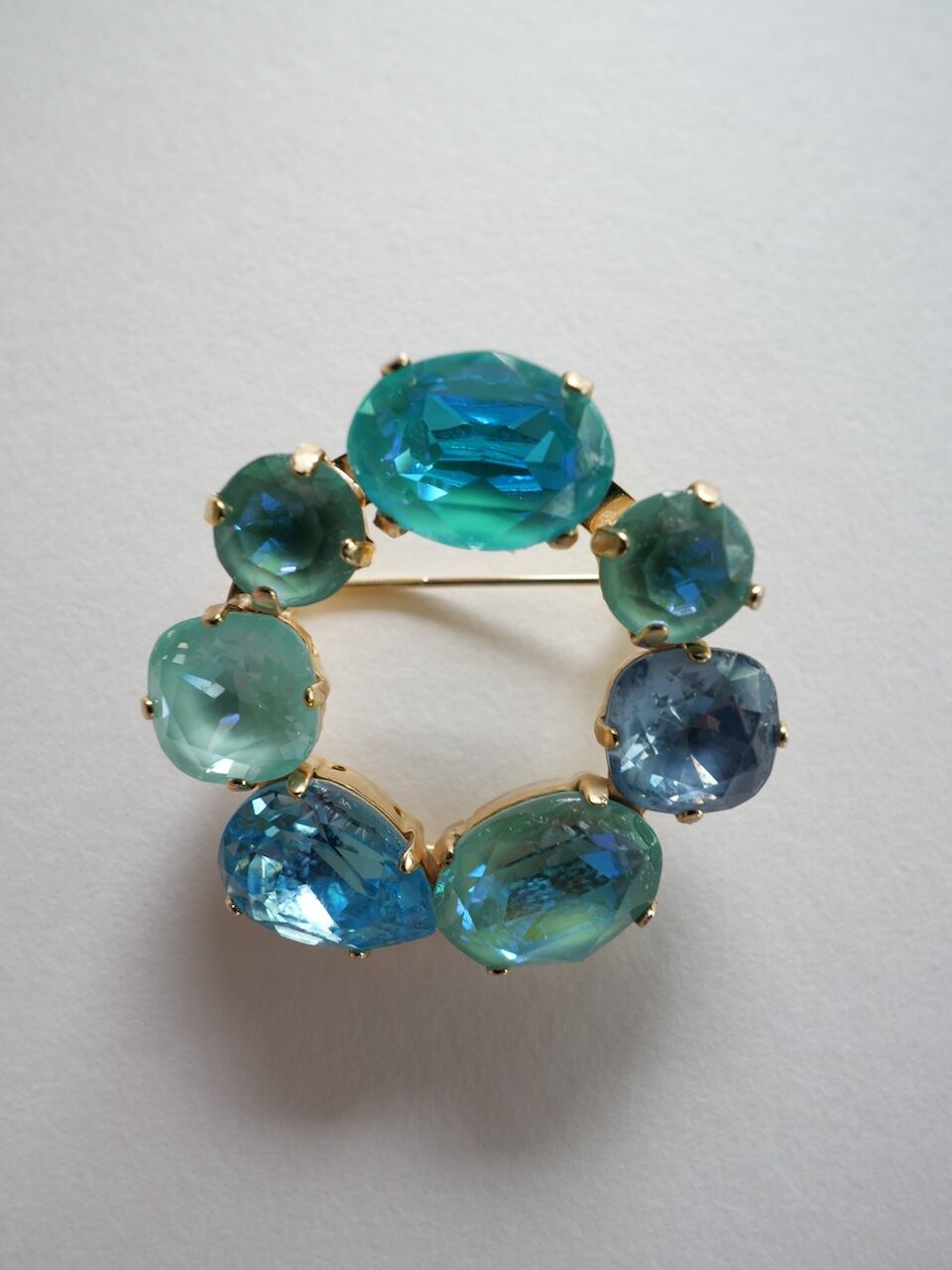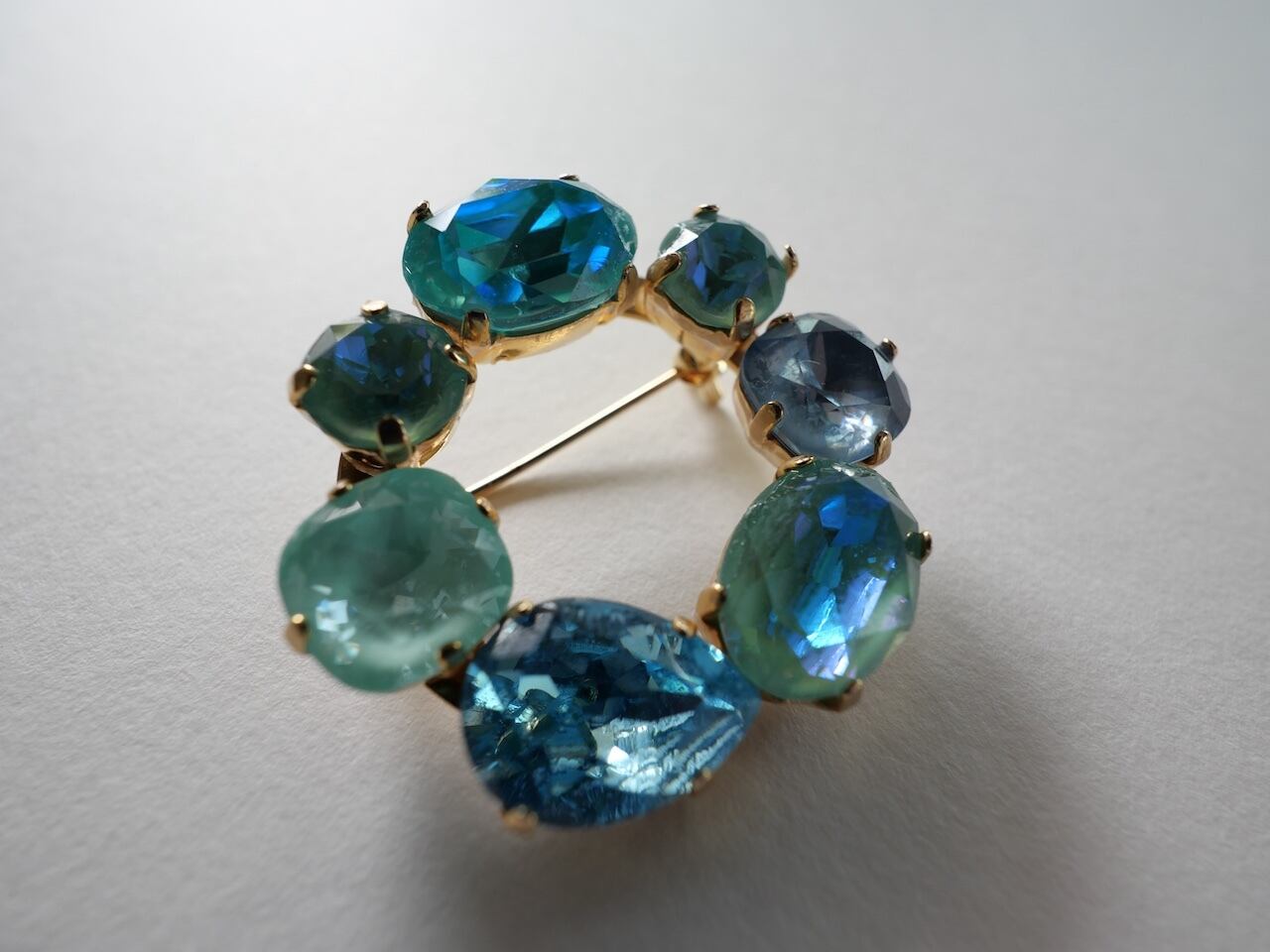 7個のクリスタルガラスを丸くブローチに仕上げたことによる