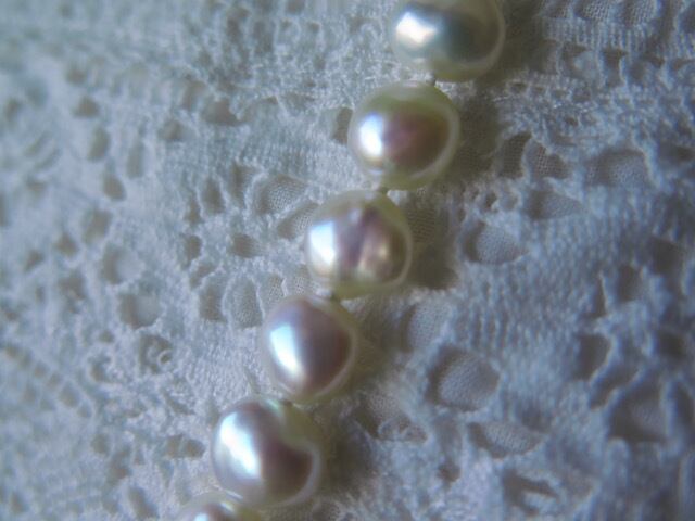 パールとパールの間に結び目をして、しっかり作っています(オールノット)。