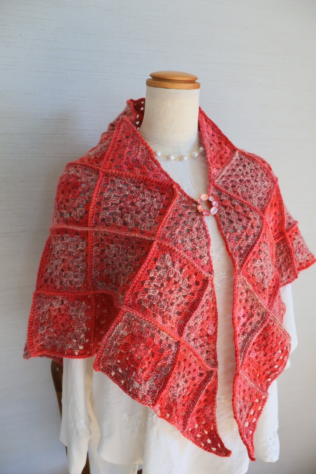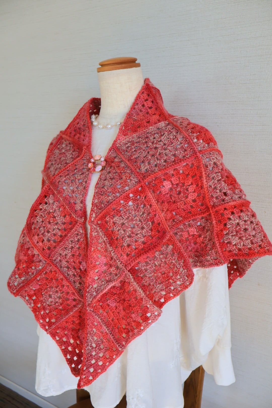 #手編み #かぎ針編み #モチーフつなぎ #ショール #ショール #ハンドメイド #オリムパス #メイクメイク