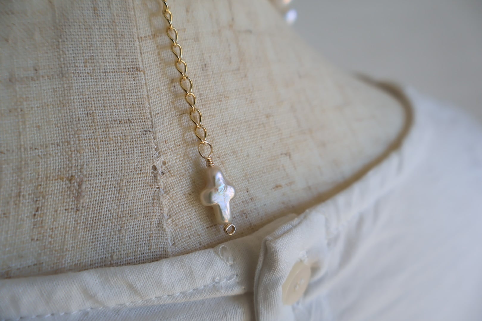 ・クロス形 淡水パール(天然色) 約 10 6ミリアジャスター先端