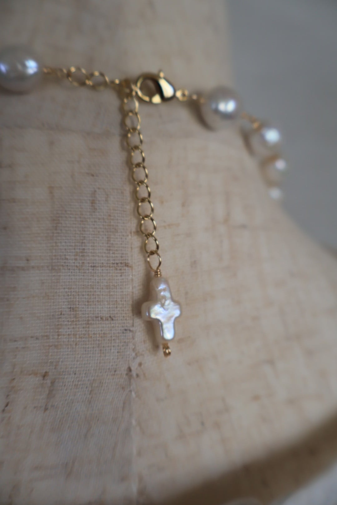 ・クロス形 淡水パール(天然色) 約 10 6ミリアジャスター先端