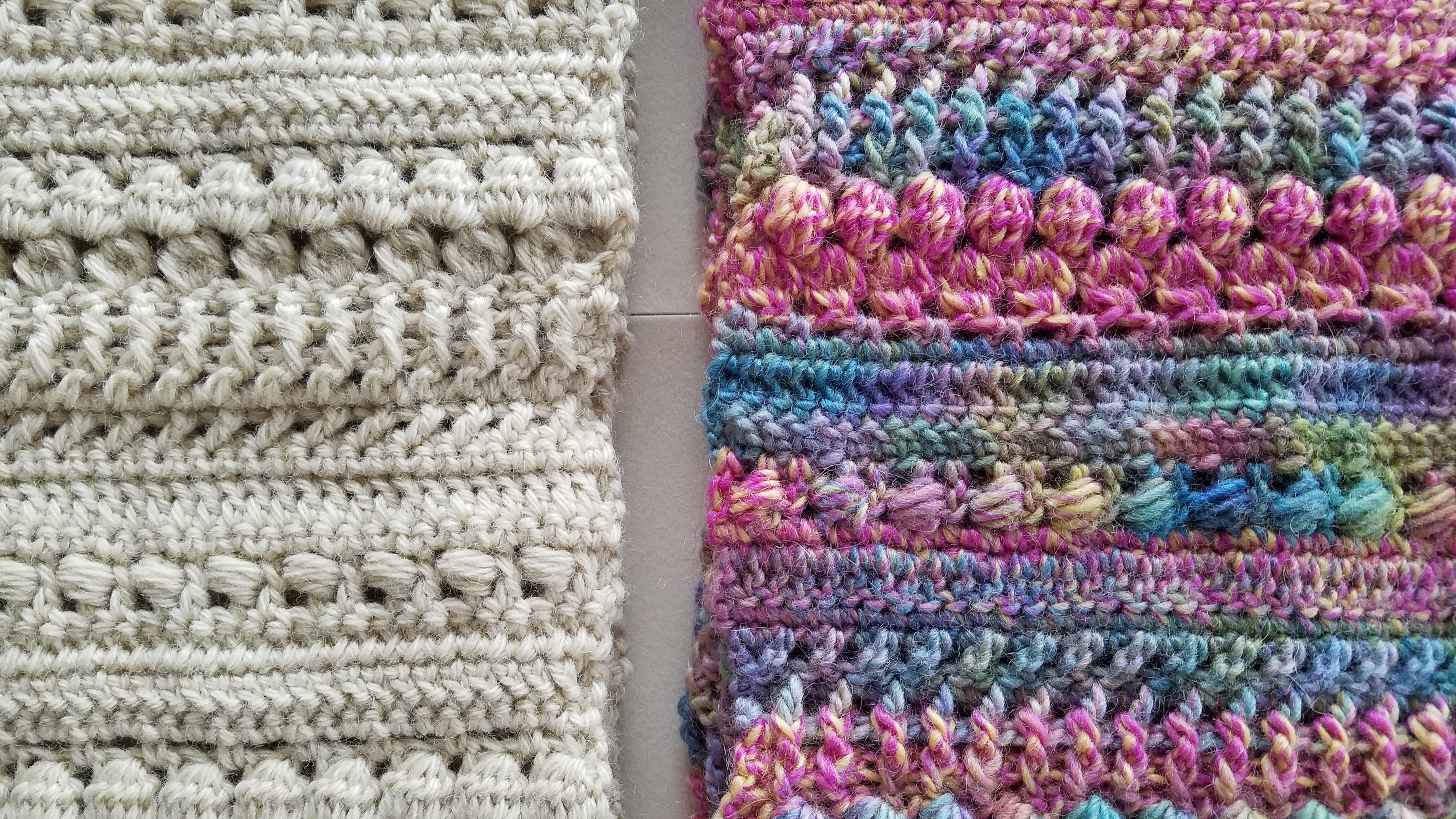編み地のテキスチャーが美しくでるように、8種類の編み方でかぎ針で編みました