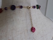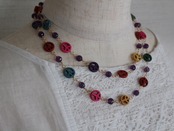 コイン形マグネサイトと丸形アメジストをワイヤーで交互につないで作ったロングネックレスです。